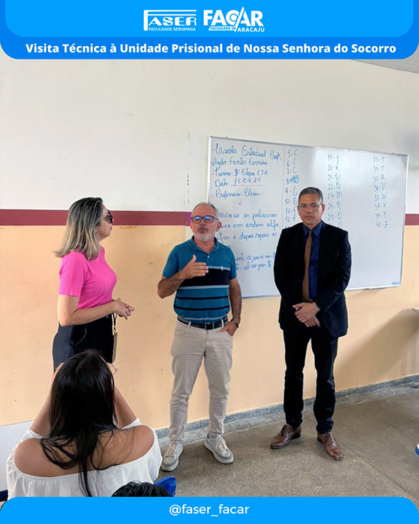 Dando continuidade às atividades complementares do curso de Direito, os alunos e alunas do 2º, 3º e 4º períodos da Faculdade Sergipana – FASER participaram de uma importante visita técnica à Unidade Prisional Feminina de Nossa Senhora do Socorro (PREFEM).