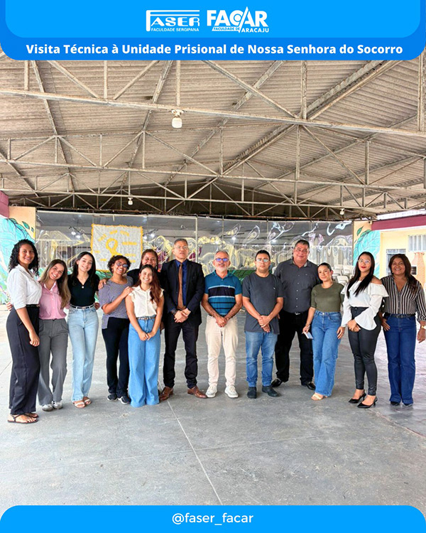 Dando continuidade às atividades complementares do curso de Direito, os alunos e alunas do 2º, 3º e 4º períodos da Faculdade Sergipana – FASER participaram de uma importante visita técnica à Unidade Prisional Feminina de Nossa Senhora do Socorro (PREFEM).